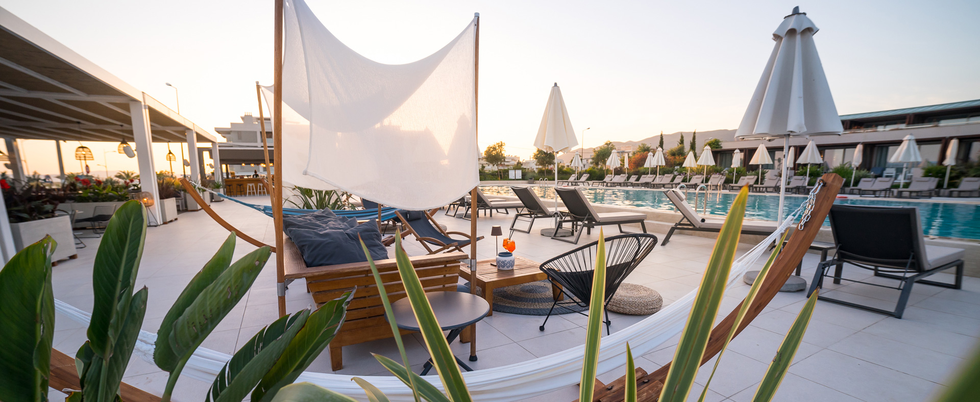 Φρεσκοκομμένος καφές, χυμοί και αναψυκτικά, ποιοτικό παγωτό, μεγάλη επιλογή από ποτά και φυσικά τα πιο δημιουργικά cocktails, υποδέχονται όλους στο πιο “ζωντανό” κομμάτι του ξενοδοχείου δίπλα στην πισίνα.